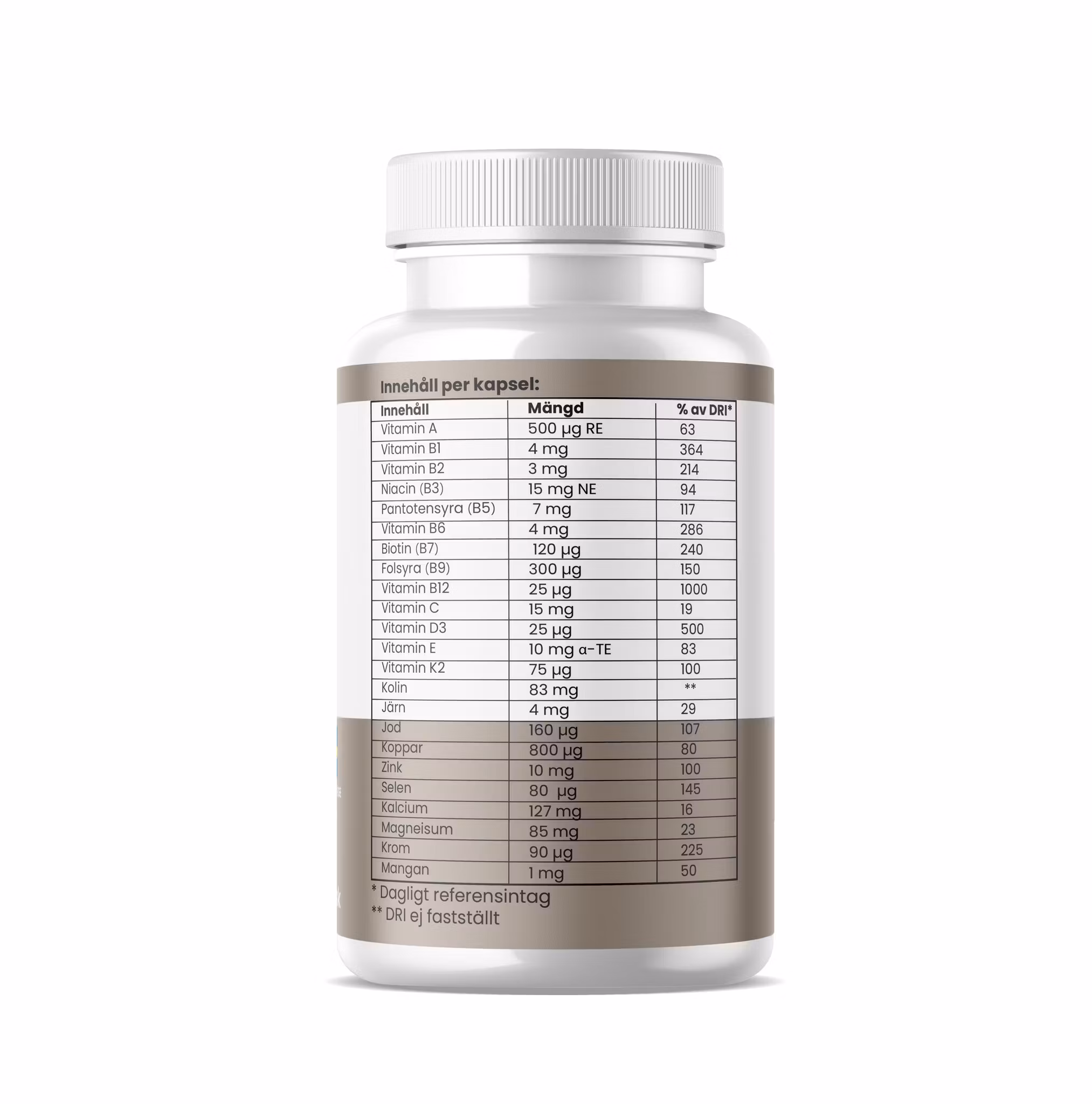 Med endast en kapsel om dagen får du en noggrant utvald kombination av vitaminer och mineraler, utvecklad för att komplettera din dagliga kost.